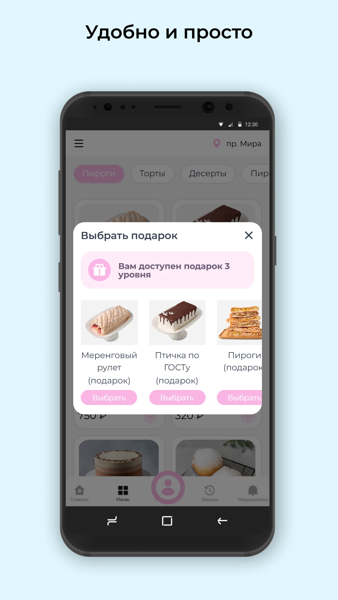 Доставка тортов и пирогов быстро и легко! С помощью нашего приложения: Вы сможете быстро оформить заказ; Отследить в личном кабинете статус заказа; Отредактировать свой профиль в личном кабинете; Получать информацию о проводимых акциях и самых вкусных предложениях через пуш уведомления! Примите участие в различных акциях! Приятного аппетита!